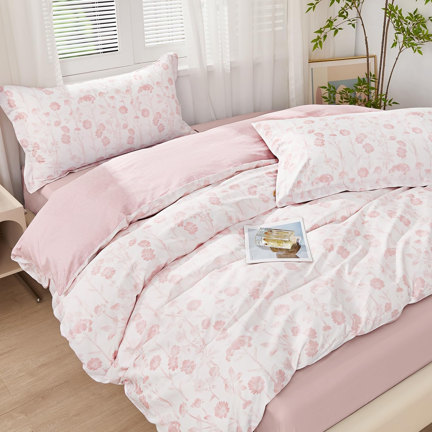 • 【Elegant Floral Design】: This cotton duvet cover set features a soft floral design with light pink flowers on a white background. The gentle pattern creates a serene and romantic atmosphere, perfect for a cozy bedroom. It includes a zipped bedding set for easy use and cleaning.